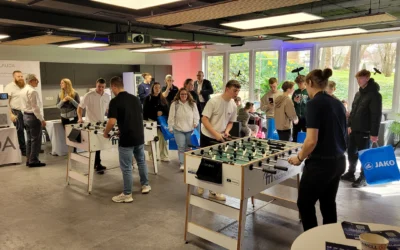 Ein besonderes Highlight ist „Kick & Connect“: Beim Tischkicker entsteht eine lockere Atmosphäre, in der man potenzielle Arbeitgeber kennenlernen, erste Kontakte knüpfen und ins Gespräch kommen kann.